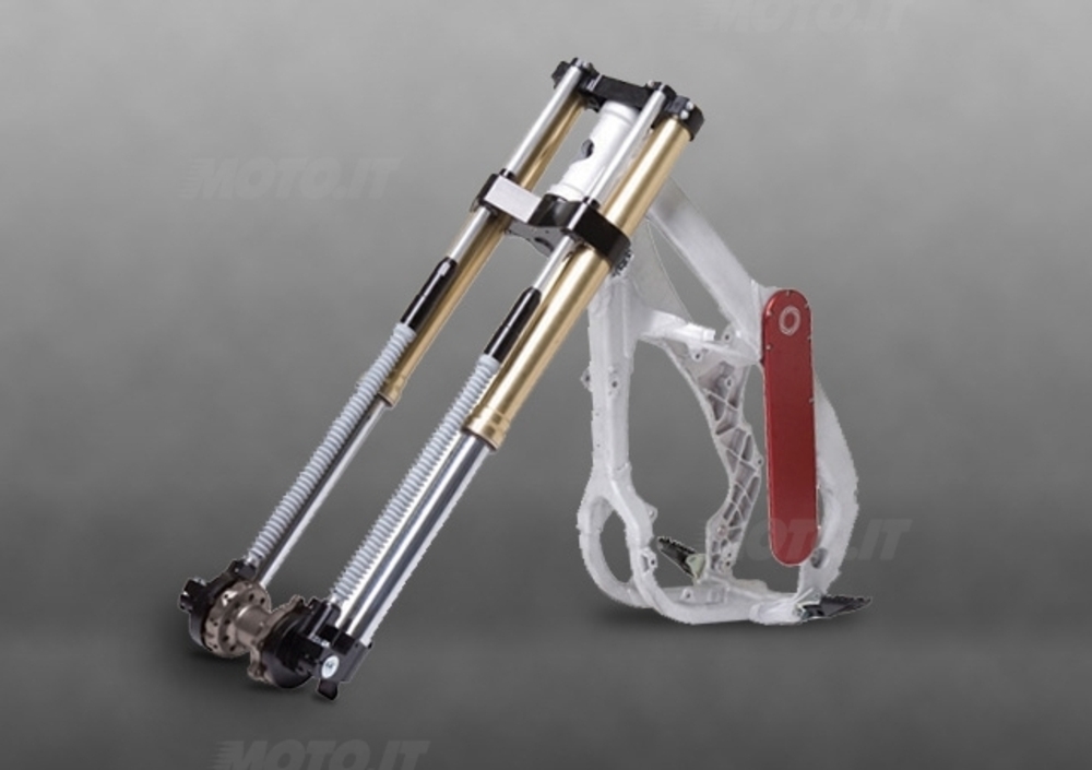 Il comparto sospensioni, vincolato ad un telaio in alluminio, conta su una forcella rovesciata Marzocchi da 48mm e un monoammortizzatore Fox RC2 con leveraggi ad azionamento progressivo. La frizione - anzi, le frizioni - sono forniti da Magura, mentre sulle due tempi Christini personalizza il motore con lamelle V-Force e scarico FMF.
