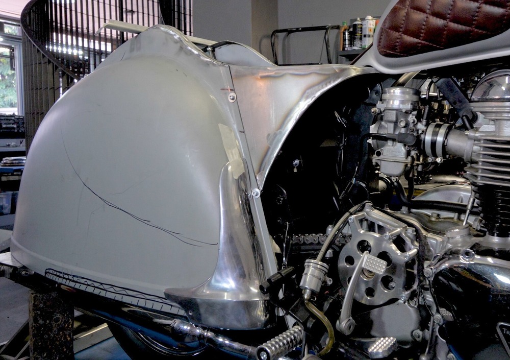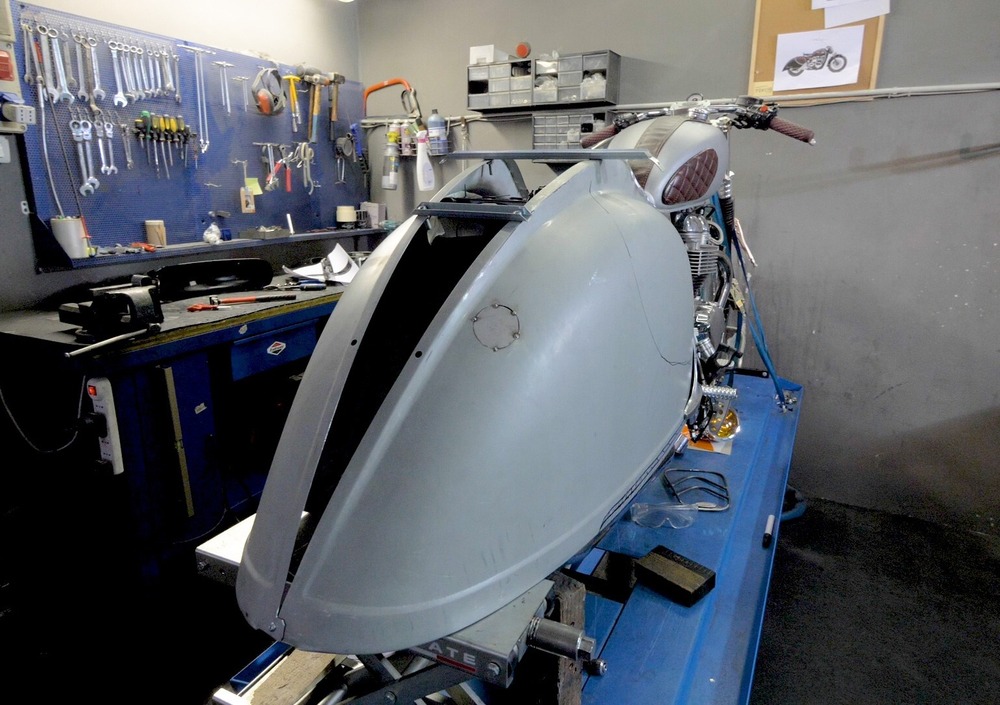 Ma come dicevamo, stiamo ancora parlando di un work in progress, anche se i tempi stringono e i ragazzi di South Garage dovranno fare gli straordinari per completare il lavoro. Mancano i fari, che anche in questo caso riprenderanno il concetto stilistico della 2CV con un montaggio a sbalzo, a lato forcella, una mascherina anteriore che prenderà le mosse dal frontale della Citroën, e poi le pedane che, sulla base della loro posizione, definiranno come si guiderà la nostra special.