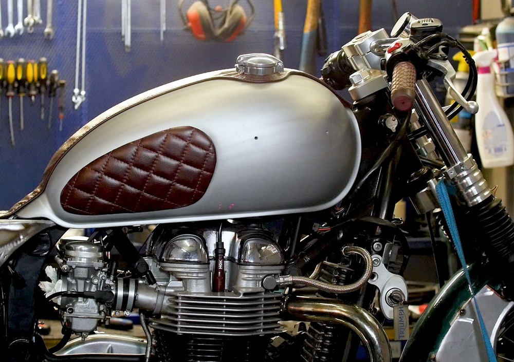 La base è una Triumph Bonneville, rigorosamente a carburatori, scelta per l’identità delle sue caratteristiche tecniche ed estetiche con la Citroën a cui deve fare da contraltare motociclistico. Insomma, una sintesi di compromesso fra la necessità di armonizzare l’estetica dei pezzi che resteranno originali e quelli che le verranno applicati successivamente, e la possibilità di lavorare nella maniera meno invasiva e più reversibile possibile, almeno per quanto riguarda la componente tecnica.