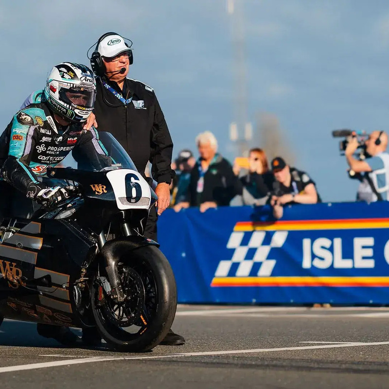 A quel punto il vantaggio di Dunlop è di 17 secondi su Adam McLean (Laylaw Racing Yamaha). Alle loro spalle il gruppo degli inseguitori formato dal sessantaduenne Ian Lougher, Sayle e Hall che vede però emergere il veterano gallese.