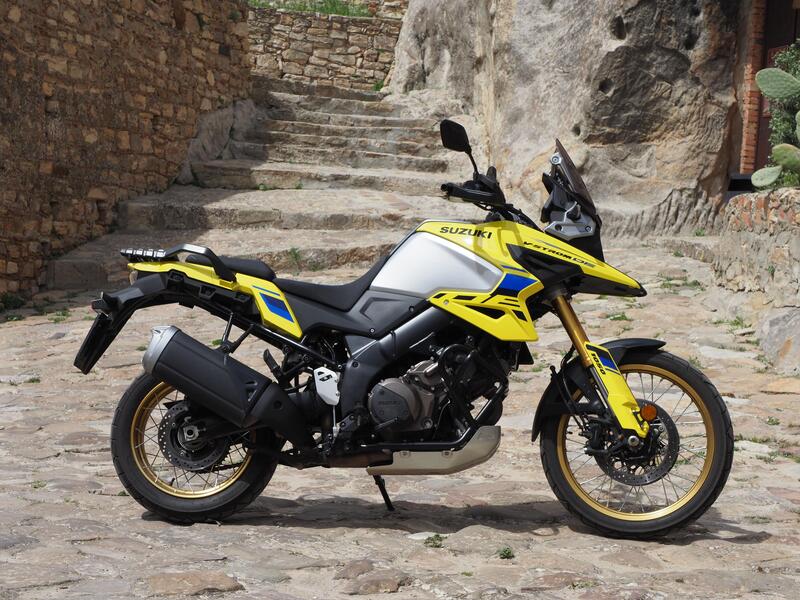 Diamo un veloce ripasso alla dotazione tecnica della V-Strom 1050DE che, è corretto sottolinearlo, è una delle poche Maxienduro rimaste ad adottare la pregiata accoppiata motore a V di 90° e telaio in alluminio. Il primo è il noto bicilindrico di 1037 cc, quattro valvole per cilindro, da 107 cavalli a 8.500 giri e 100 nm di coppia massima a 6000 giri. Numerose le raffinatezze tecniche di questa unità giunta a un livello di maturità pressoche assoluto, citiamo le valvole di scarico cave e al sodio, la doppia accensione e l'evoluta gestione elettronica S.I.R.S supportata da IMU a sei assi; troviamo quindi ABS cornering (2 livelli e disattivabile sulla ruota posteriore) e frenata combinata, TC cornering (3 livelli, disattivabile e modalità Gravel), Hill Hold Control, 3 mappe motore (potenza piena per tutte, cambiano i medi regimi), Cruise Control di serie, Ride-by-Wire, Quick Shift bidirezionale, Suzuki Easy Start System, Low RPM Assist, Combined Brake System, Motion Track Brake System, Load Dependent Control System.