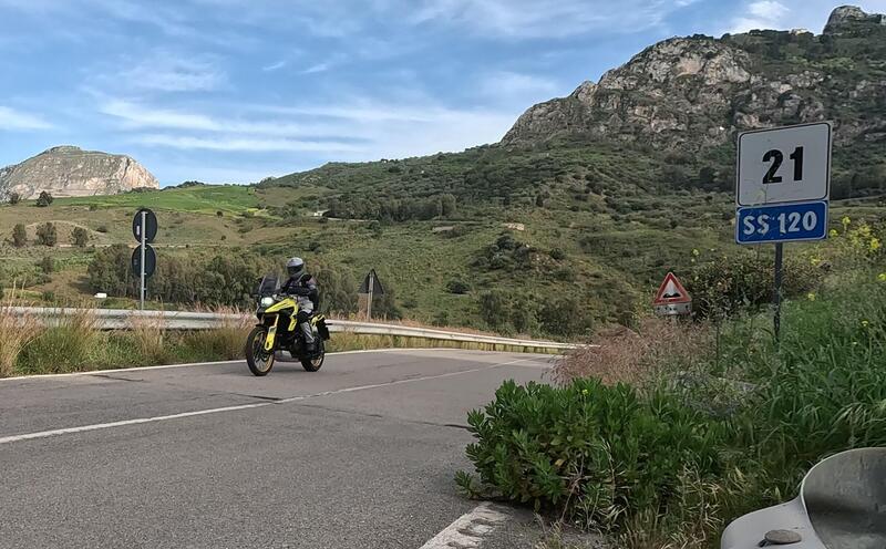 Ma, visto che queste prove sono state in qualche modo limitate per chilometraggio o per tempo trascorso in sella, abbiamo deciso di portare la V-Strom 1050DE a un vero tour de force: 550 km in un solo giorno, da una costa all'altra della Sicilia e ritorno e, per di più, l'andata su una sola strada, la mitica SS120 che è stata (ed è) teatro della leggendaria Targa Florio. Un modo certamente singolare ma efficace per mettere alla frusta la Maxienduro di Hamamatsu e di sviscerarne le qualità e - perché no - gli eventuali limiti e anche un'occasione per farvela apprezzare nei dettagli che talvolta durante le presentazioni stampa per ragioni di tempo non è sempre possibile esplorare. Pronti?