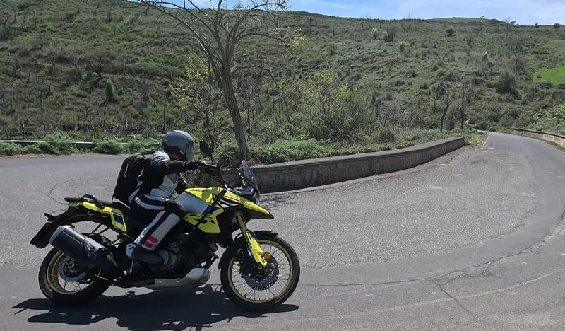 Cosa ci portiamo a casa da questi 550 km? Innanzitutto è mancata una vera prova in off: chi scrive ha percorso soltanto qualche semplice sterrato sabbioso dove comunque la V-Strom 1050DE è stata ben più che accessibile nonostante degli pneumatici (Dunlop Trailmax Mixtour) dal carattere stradale, per il resto siamo tornati a Catania stanchi, lo ammettiamo, ma non provati. A parte la magia di un itinerario straordinario che spesso toglie la fatica dai muscoli, come spesso accade nei progetti molto evoluti il valore lo si apprezza alla distanza o durante prove impegnative e la V-Strom 1050DE è stata capace di mantenere alto il livello di sicurezza e di divertimento lungo tutto il viaggio, è una di quelle moto che riponi in garage la sera, anche dopo tragitti lunghi, con già la voglia di riprendere la mattina seguente il discorso interrotto. In questo senso ne ha certamente più di noi, a meno che non siate dei fuoristradisti professionisti e in grado di governare su sabbia, pietre o sterro una moto alta, grande e dalla massa rilevante. Per tutti gli altri, beh... vi aspetto sulla SS120!