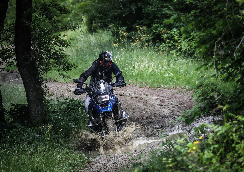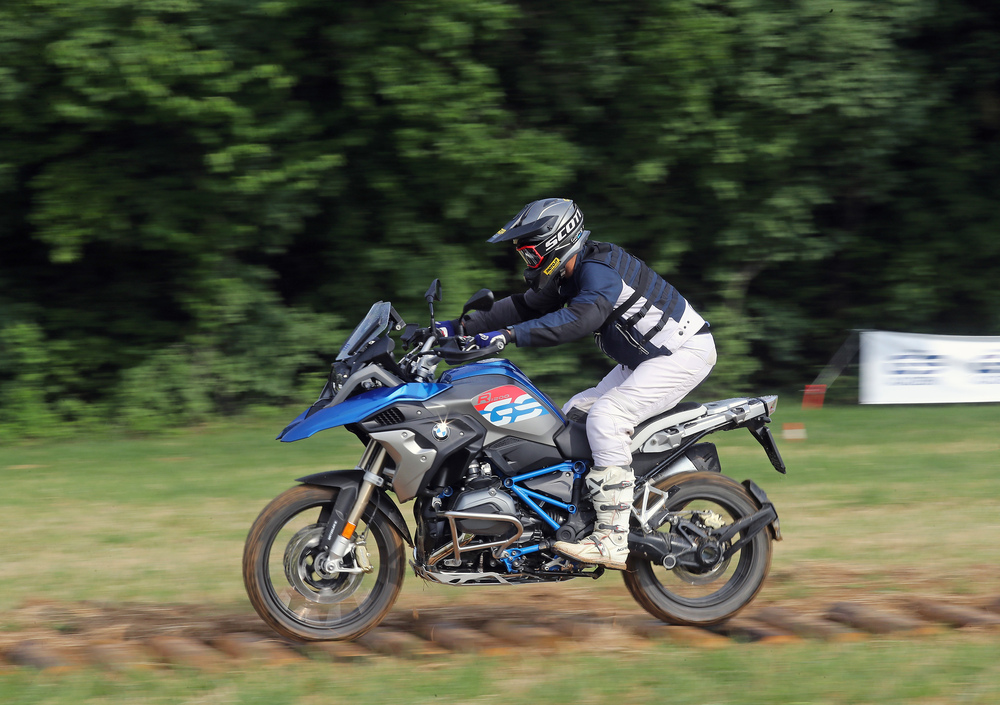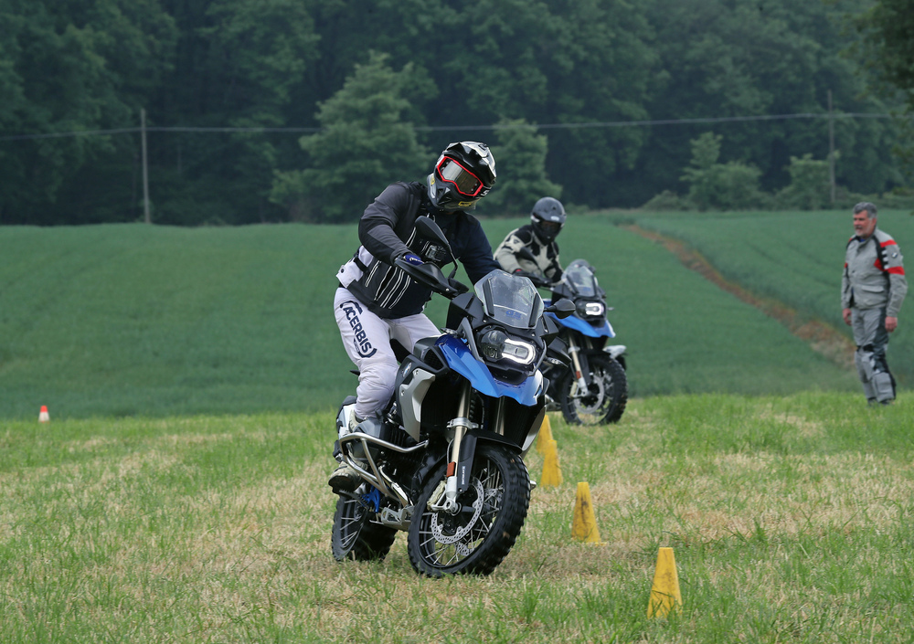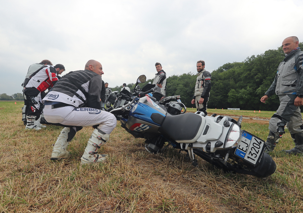 Il primo giorno è dedicato ai rudimenti della guida offroad nel campo pratica. Non pensiate sia tempo perso, anzi! Qui si apprendono le nozioni basilari, che sono essenziali per guidare moto potenti e pesanti sui fondi a scarsa aderenza. Solo spostando correttamente il peso e gestendo al meglio i comandi è infatti possibile condurre nel fango maxi come la GS. Gli istruttori spiegano quindi la postura corretta in curva, sui tronchi e nei canali. Anche sollevare la GS (che col pieno pesa 244 kg) non è un problema, basta impiegare la giusta tecnica (ve la mostriamo, insieme agli altri esercizi, nel video sopra). A fine giornata c'è la prova del 9: si passa infatti dal campo "giochi" all'adiacente boschetto, pieno di trabocchetti utili a mettere in pratica le nozioni.