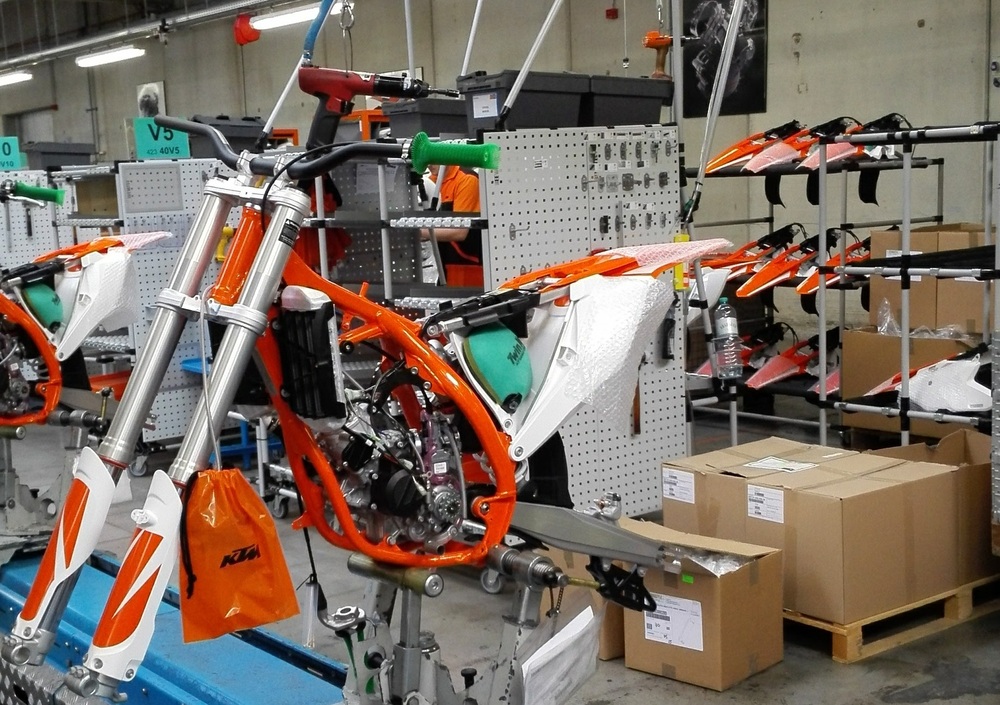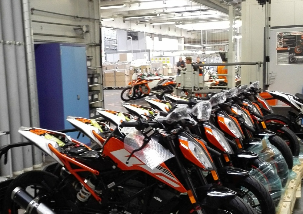 Ci ha guidati nel nostro tour Angelo Crippa (AD di KTM Italia). Con lui visitiamo nel video sopra i reparti della fabbrica. Come vedrete, manca all'appello solo l'assemblaggio del motore: questo arriva infatti preassemblato da un altro stabilimento, posto sempre alle porte di Mattighofen.