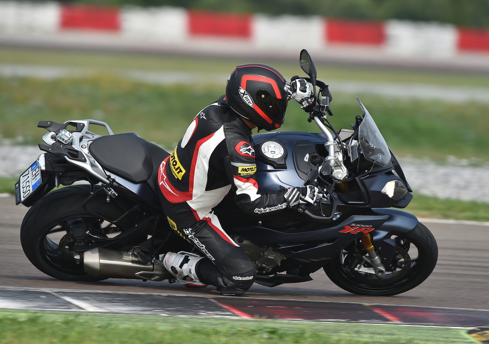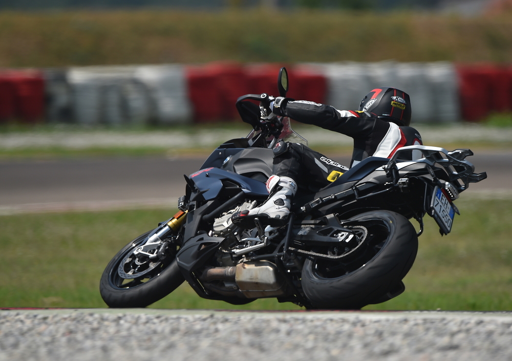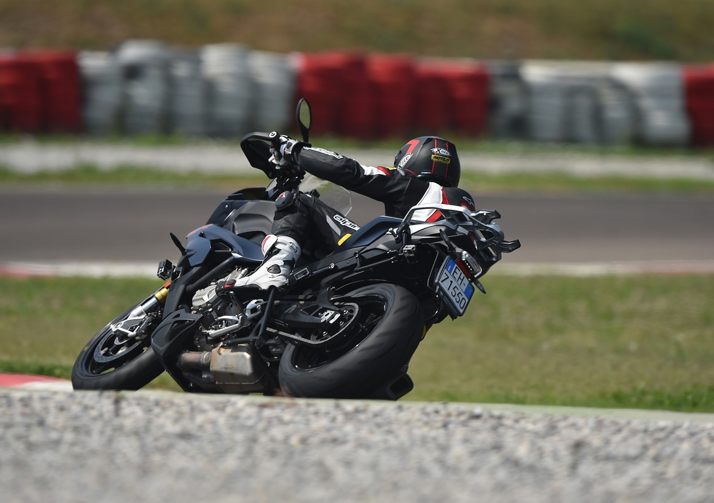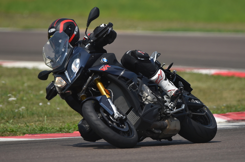 A noi le termocoperte non servono. Le nostre gomme non soffrono di certo i cicli termici, mentre sono capaci di entrare in temperatura in men che non si dica, quindi in quattro e quattr'otto siamo a divertirci in mezzo ai cordoli. Una BMW S1000 XR in pista potrebbe sembrare leggermente fuori luogo, ma vi possiamo assicurare che non lo è affatto. Prima di tutto, grazie al potentissimo motore a quattro cilindri preso in prestito dalla sorella S1000 RR: anche se depotenziato a "soli" 165 cavalli, il motore tedesco ha tanto da dire, e uno dei suoi argomenti migliori riguarda la coppia di 112 Nm a 9.250 giri: numeri molto interessanti quando si va a strapazzare la manopola del gas!