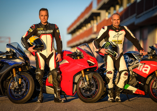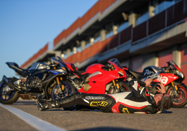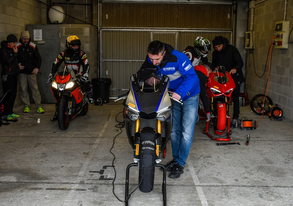 Per questo motivo una comparativa su questo segmento di moto richiede un impegno nettamente diverso rispetto al solito, con la partecipazione diretta di un fornitore per gli pneumatici (nel nostro caso Pirelli), un circuito in esclusiva ma anche la presenza attentissima delle Case coinvolte, che vogliono assicurarsi che tutto si svolga nella maniera più regolare possibile. Sia pure con sole tre moto, quindi, la nostra comparativa ha... fatto lavorare un sacco di gente. Vi mostriamo qualche scatto nei box, certi che riconoscerete più di una faccia nota dell'ambiente, fatti durante le due giornate sul tracciato di Alcarràs durante la nostra comparativa.