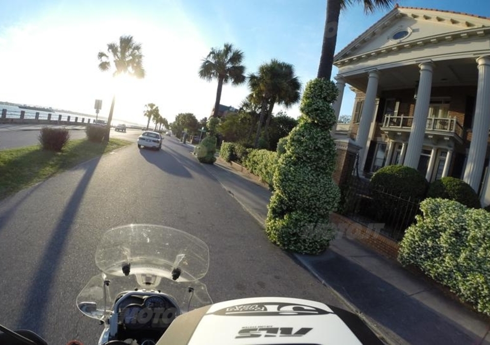 La "action camera" montata sulla moto da delle inquadrature molto particolari e dinamiche, ma va piazzata attentamente per evitare vibrazioni che creano del mosso o foto in cui metà dello scatto è nascosto dal corpo della moto. Bello magari in pista ma non proprio il massimo tra i vicoli del French Quarter di New Orleans, tanto per fare un esempio. Montata sul casco la telecamerina dona secondo me il meglio di sé, nel turismo e in tutte quelle situazioni dove sia importante far vedere il più possibile della scena circostante.