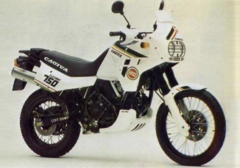 La Cagiva Elefant 750, la prima versione fu prodotta dal '87 al '90, le sua storia segue in parallelo quella della mitica Elefant 900 che fu capace di vincere la Parigi-Dakar del '90 con Edi Orioli dopo che Honda aveva conquistato ben 4 edizioni consecutive e sembrava imbattibile. E' una moto interessante a livello collezionistico. Il motore è il biclilindrico raffreddato ad aria di Ducati da 750cc e 60cv di potenza massima e 63,7 Nm a 5.500 giri, cambio 5 marce, telaio in acciaio e peso a secco di 188kg, serbatoio da 23 litri. Forcella Marzocchi e mono con leveraggio progressivo. Stuzzicante per collezionisti, ma occhio alla manutenzione, si tratta di una moto che deve essere trattata con la giusta attenzione.
