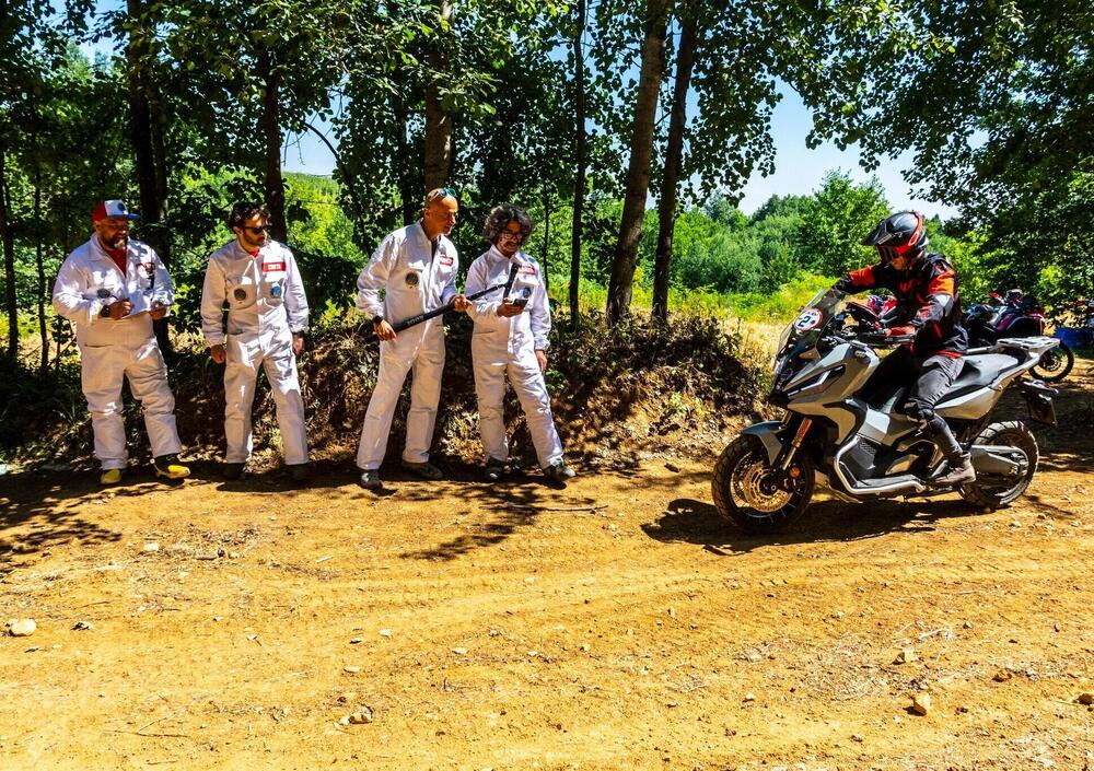 Abbiamo iniziato con la prova di destrezza tra i birilli. Un percorso piuttosto lungo da fare nel maggiore tempo possibile, senza mettere i piedi a terra. Stile trial insomma. Siamo passati poi al test della carreggia: un canale ripido e sassoso di 20 metri. E alla fine i nostri 6 sfidanti hanno affrontato le prove più difficili ma anche più divertenti: il campo da cross (da fare non nel minor tempo possibile, ma nel tempo più vicino a quello fissato insindacabilmente dai tre malefici giudici). E per finire la prova di abilità e furbizia più divertente: la foto-selfie con l'X-ADV tra le vie del paesino sperduto.