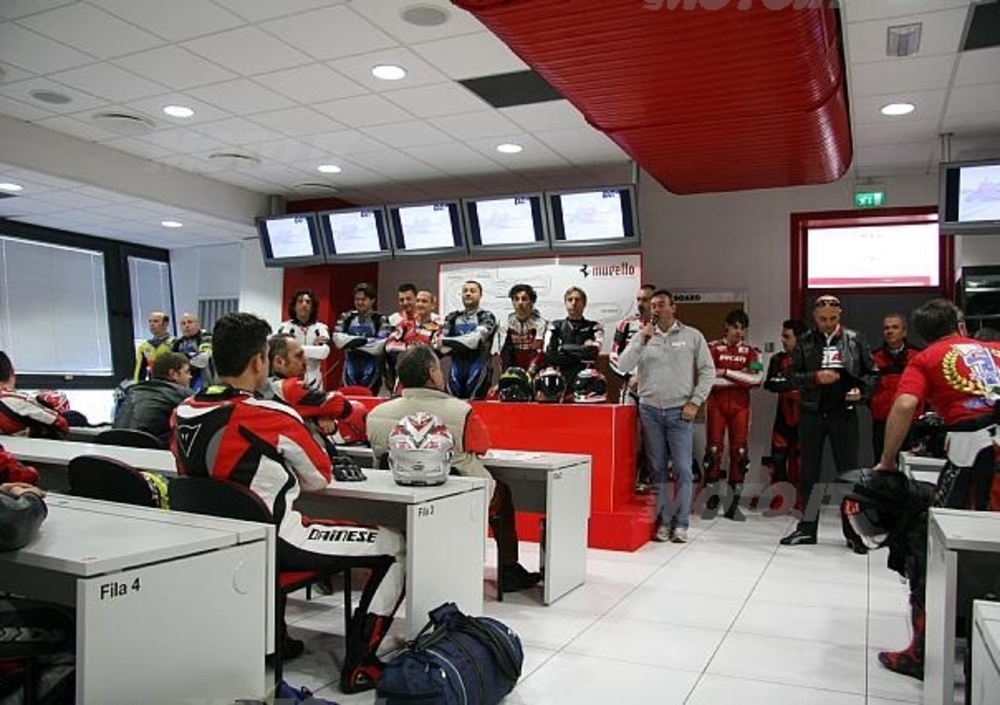 Sguardo lontano, posizione corretta sulla Rossa (accucciati in rettilineo o con il peso spostato all'interno in curva), gestione graduale di freno e acceleratore sono i temi della lezione.