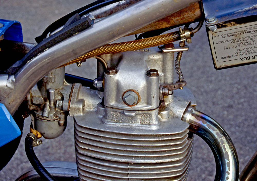 La moto di questo servizio è una Rickman B 44 “Weslake Conversion”. In altre parole si tratta di una Metisse da cross con motore BSA Victor modificato mediante adozione di un nuovo gruppo pistone/cilindro e di una nuova testa, disegnata dallo specialista Harry Weslake. Grazie all’aumento dell’alesaggio la cilindrata dai 441 cm3 originali è passata a 490. Nella testa spiccano le due valvole parallele e non più inclinate come nel monocilindrico BSA di serie. Questa scelta poteva sembrare un passo indietro (e tutto sommato dal punto di vista tecnico lo era), ma la fama che accompagnava Weslake era tale che i Rickman avevano adottato la nuova testa senza alcuna esitazione. In effetti la moto andava un poco più forte (in particolare ad essere più vigorosa era la coppia ai medi regimi) ma sembra che il miglioramento fosse dovuto più all’incremento di cilindrata che alla adozione della testa Weslake…