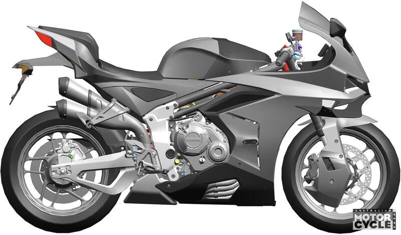 Il design si ispira anche alla MotoGP, con ali anteriori ampie, un parafango che avvolge i freni radiali a quattro pistoni e un faro centrale affiancato da due grandi prese d’aria.
