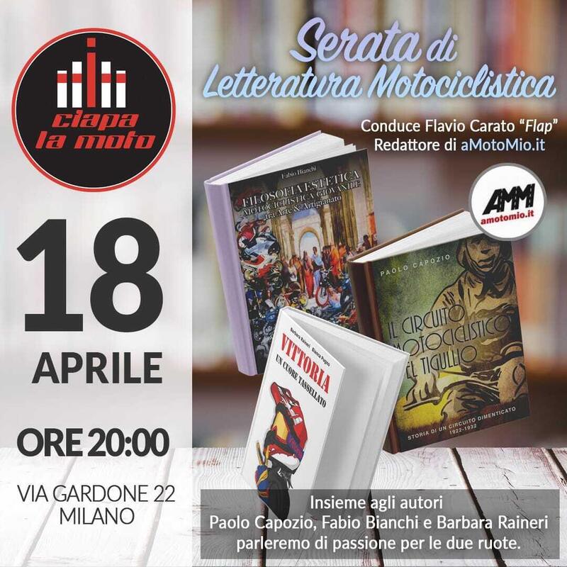 Si parla di moto anche attraverso i libri ed ecco che Ciapa la Moto organizza una Serata Letteraria Motociclistica dedicata ad Autori emergenti.