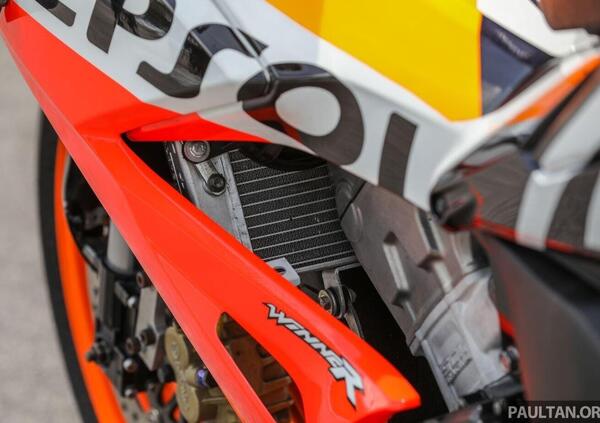 Carrozzeria, con tanto di alette aerodinamiche, e grafica si sono rifatti alla Honda RCV da gara. Il telaio è stato modificato per poter montare il forcellone monobraccio e la ruota a sbalzo di una VFR800.