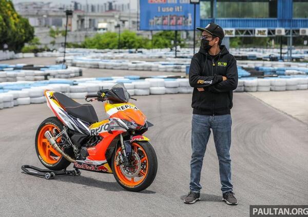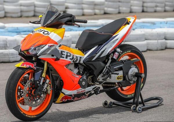 In Malesia pare accada spesso: si prende una moto di piccola cilindrata, come la Honda RS150R SuperCub in oggetto, e la si elabora montando parti di moto di cilindrata molto, ma molto superiore.