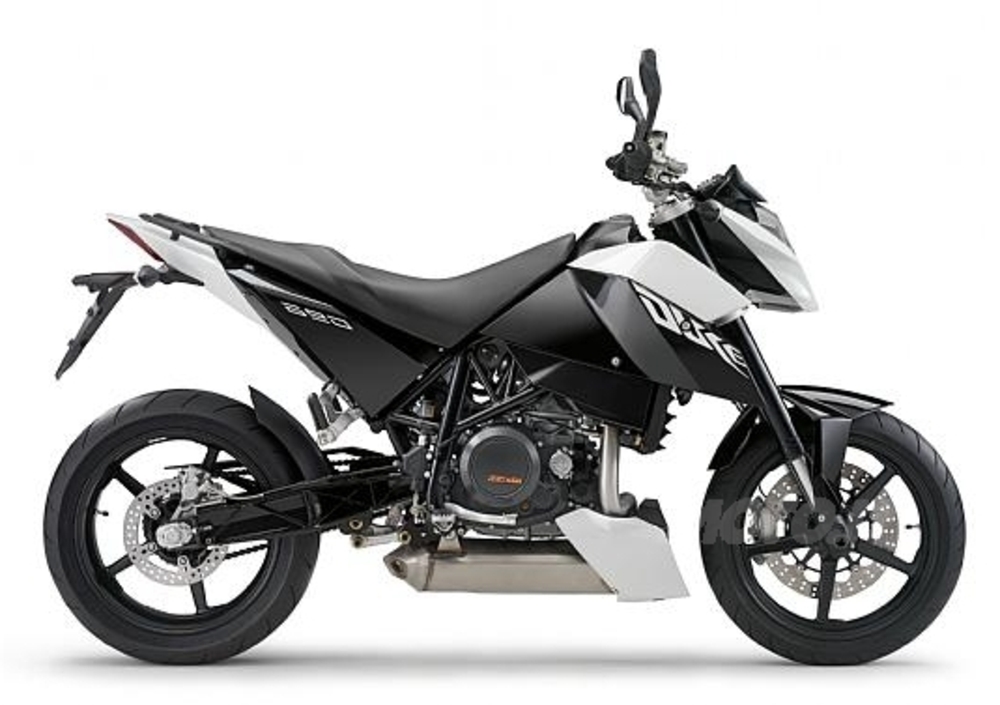 Arriva l'erede della Duke, ora si chiama Duke 690. Linee sempre spigolose e scarico sotto motore per una moto destinata a fare tendenza fuori dai locali alla moda.