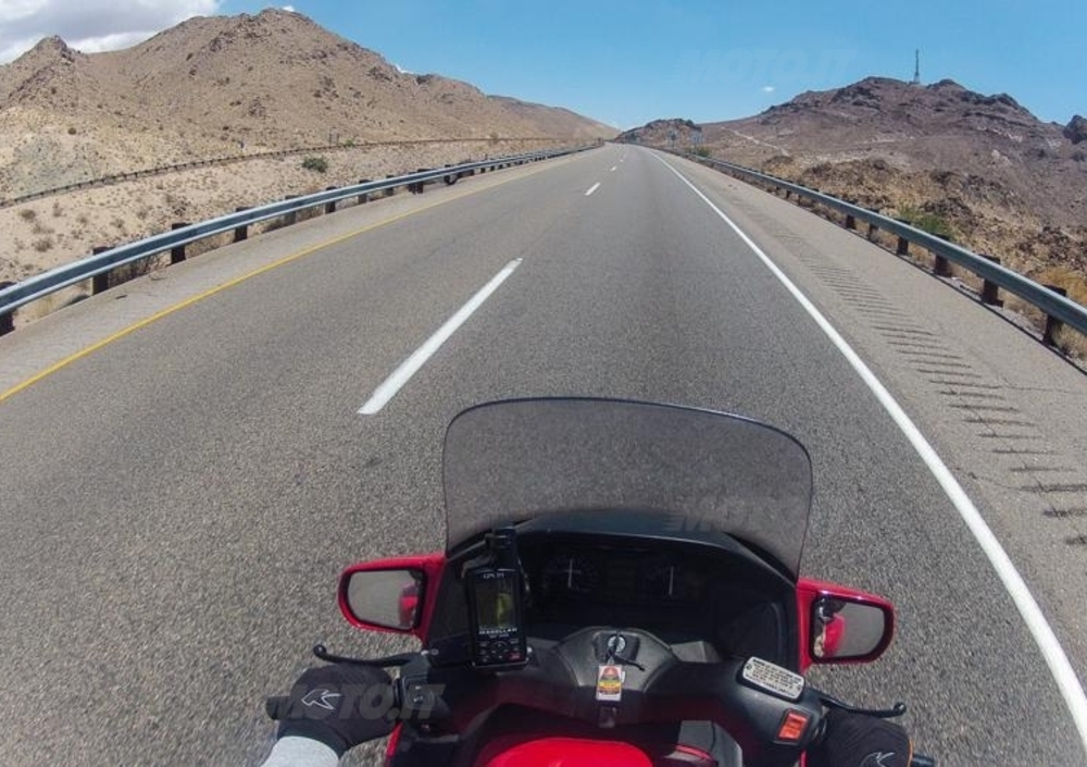 L'occasione si è presentata nei giorni 19 e 20 on the road, al momento di tagliare la zona desertica che va dalla California al centro dell'Arizona. Un totale di 1.000 miglia che abbiamo percorso in due giorni: 600 miglia (965 km) da Redding a Barstow e 400 miglia (640 km) da Barstow a Flagstaff, AZ.