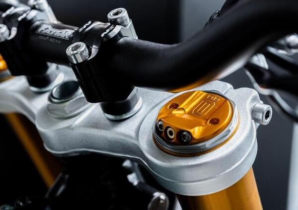 Ha carrozzeria in vetroresina, serbatoio da 7 litri, sella con differenti rivestimenti (ma sempre alta 900 mm da terra), fari, frecce e strumentazioni minimalisti, manubrio Renthal Fatbar, pompe freno Brembo e Magura e alcune componenti di Rizoma.