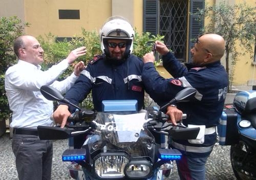 Presenti oggi, oltre al Questore Savina e ai responsabili del reparto motociclisti della Questura, anche Vittorio Cafaggi per Dainese e Stefano Ronzoni, direttore vendite di BMW Motorrad Italia.