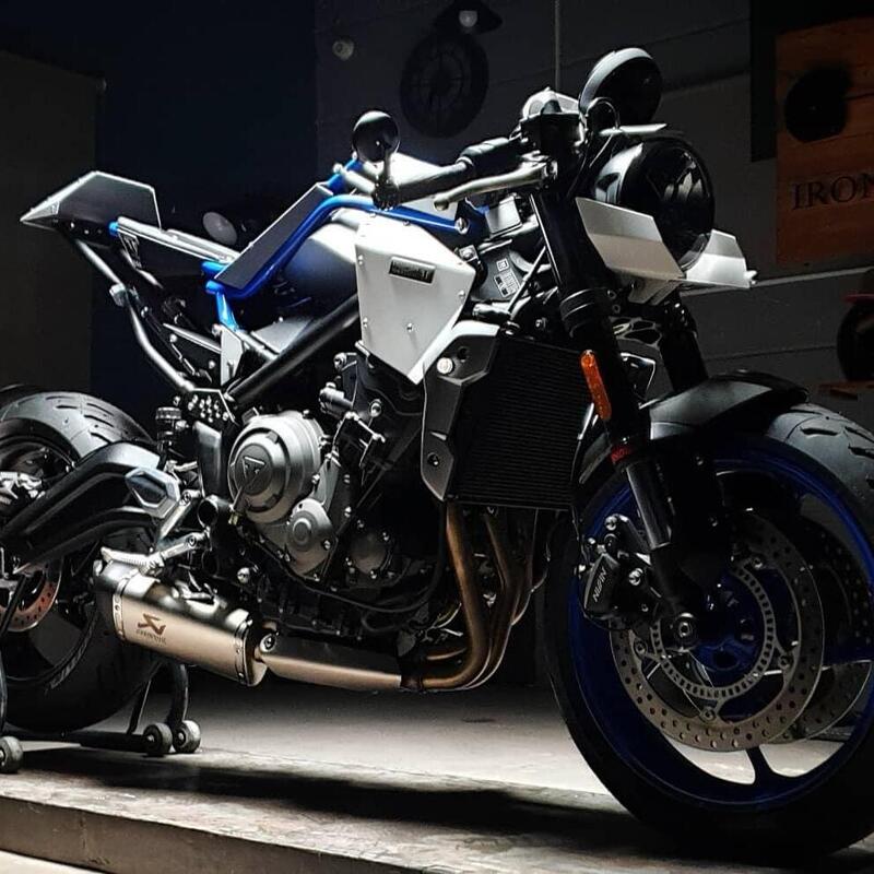 L'avantreno ha visto arrivare forcella a steli rovesciati, freni e ruota da una Yamaha R1: le piastre di sterzo sono state lavorate al CNC per trovare le misure corrette. Il retrotreno (forcellone, monoammortizzatore con relativa sospensione adattata e ruota) è invece quello di una Yamaha R6.