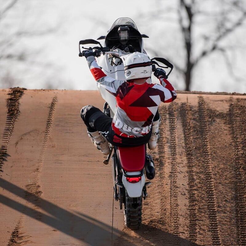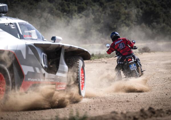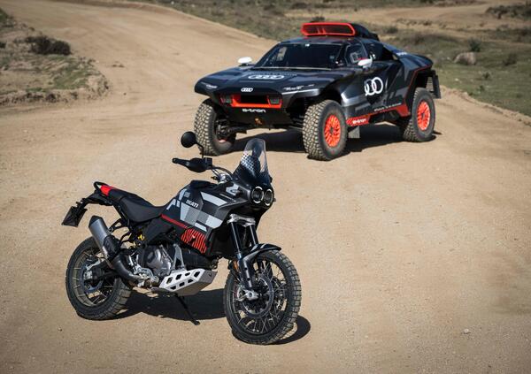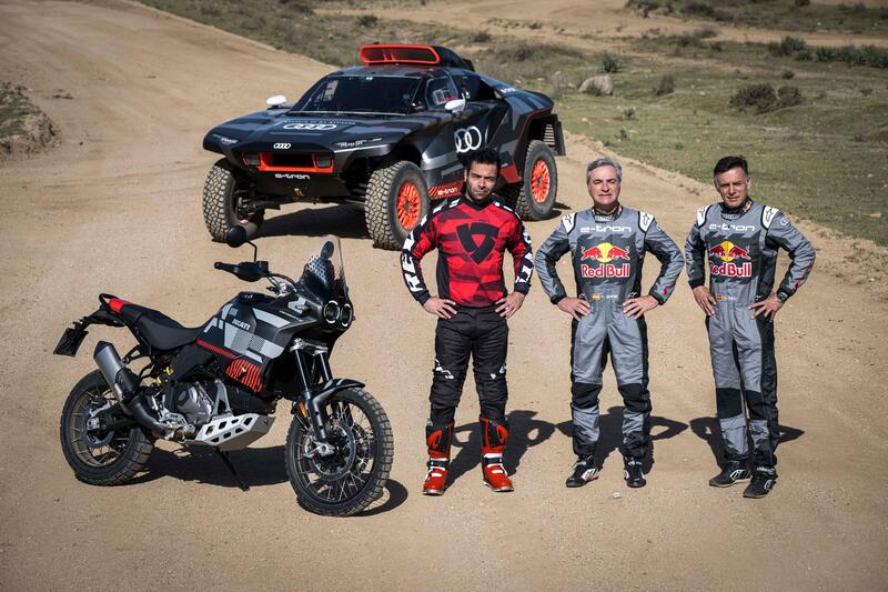 Approfittando del debutto internazionale della nuova moto in Sardegna, Ducati ha organizzato una "sfida" in fuoristrada che ha coinvolto la nuova Ducati DesertX e la Audi RS Q e-tron da rally.