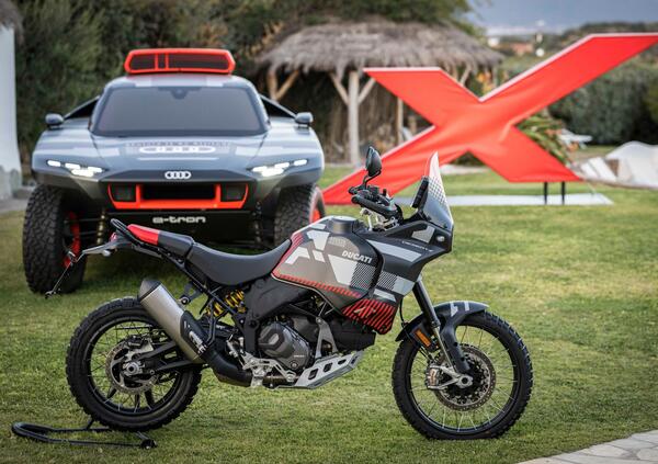 Per l'occasione il centro stile Ducati ha realizzato una livrea esclusiva per la DesertX ispirata proprio a quella della RS Q e-tron.