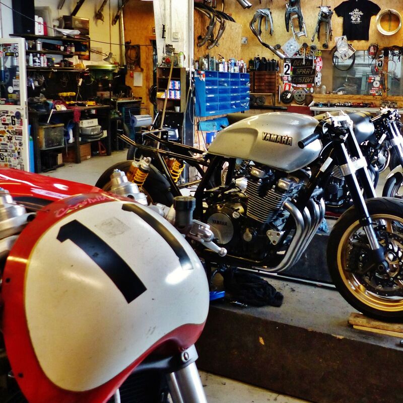 Sfidando la loro superiorità fisica e nella speranza di non essere cosparso di pece e piume e poi esposto come un trofeo, mi sono presentato una sera da solo a chiedere asilo politico e ho trovato venti nuovi amici che puzzano di olio motore e di gas di scarico Euro zero; mentre l’eterogenea compagnia (avvocati, falegnami, produttori- tv, poliziotti…) tra i 20 ed i 37 anni d’età è intenta a sporcarsi personalmente le mani col sottofondo di una colonna sonora di scarichi liberi e rock a palla, cerco di darmi un tono – cercate di capirmi: non ho la barba, nessun tatuaggio, sono più basso di loro di 15 cm e più leggero di 30 kg - ma Andreas Garrido, quasi due metri di passione per la sua Honda Four, mi accoglie come un vecchio amico. Dead Cat Motorcycles è un rifugio dove i venti soci migrano le sere d’inverno fino a notte fonda preparando le moto per la bella stagione quando poi le useranno per andarci in giro per mezza Europa.