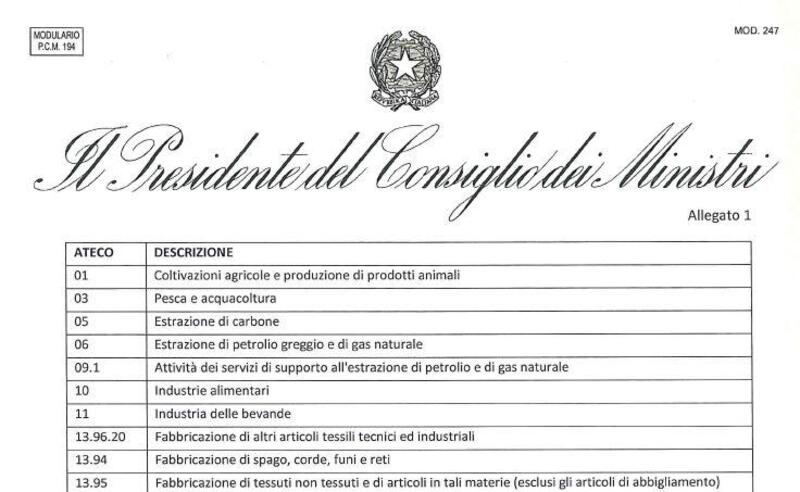 La lista ATECO, che trovate in fondo, è stata stilata dopo il confronto fra governo e parti sociali.