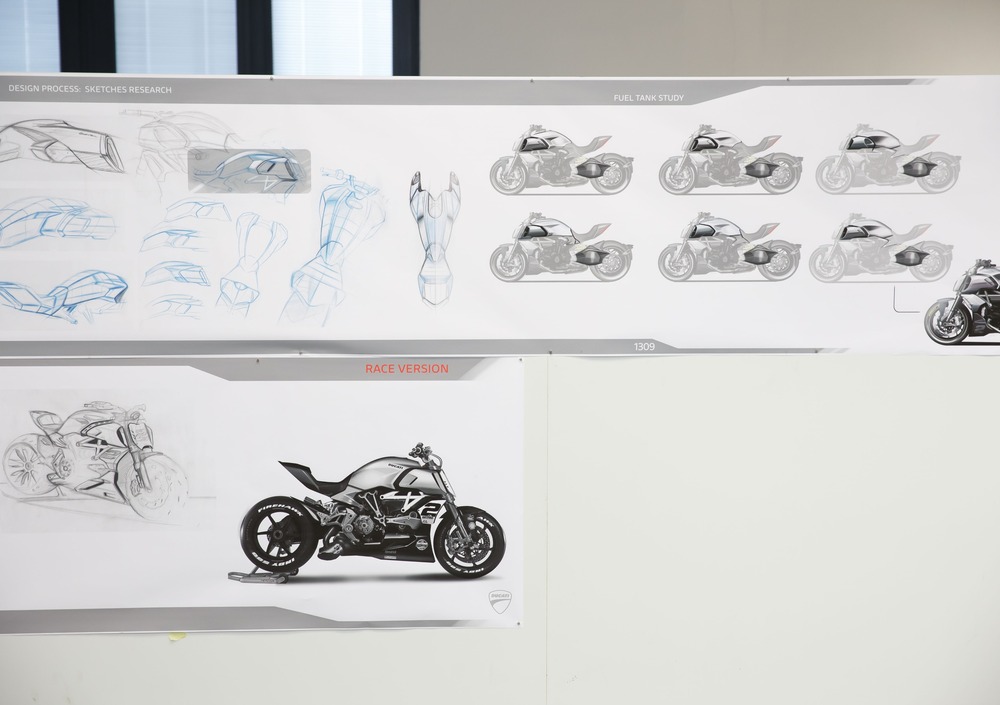 Ogni nuovo progetto viene affidato a più designer, in una sorta di competizione interna attraverso la quale sono proposti non soltanto soluzioni di stile ma anche tecniche e di packaging meccanico. Nel caso della Diavel 1260 i designer coinvolti sono stati tre. Per la recente Panigale V4 sono stati addirittura sei, un record in Ducati: erano stati quattro per la Panigale bicilindrica.