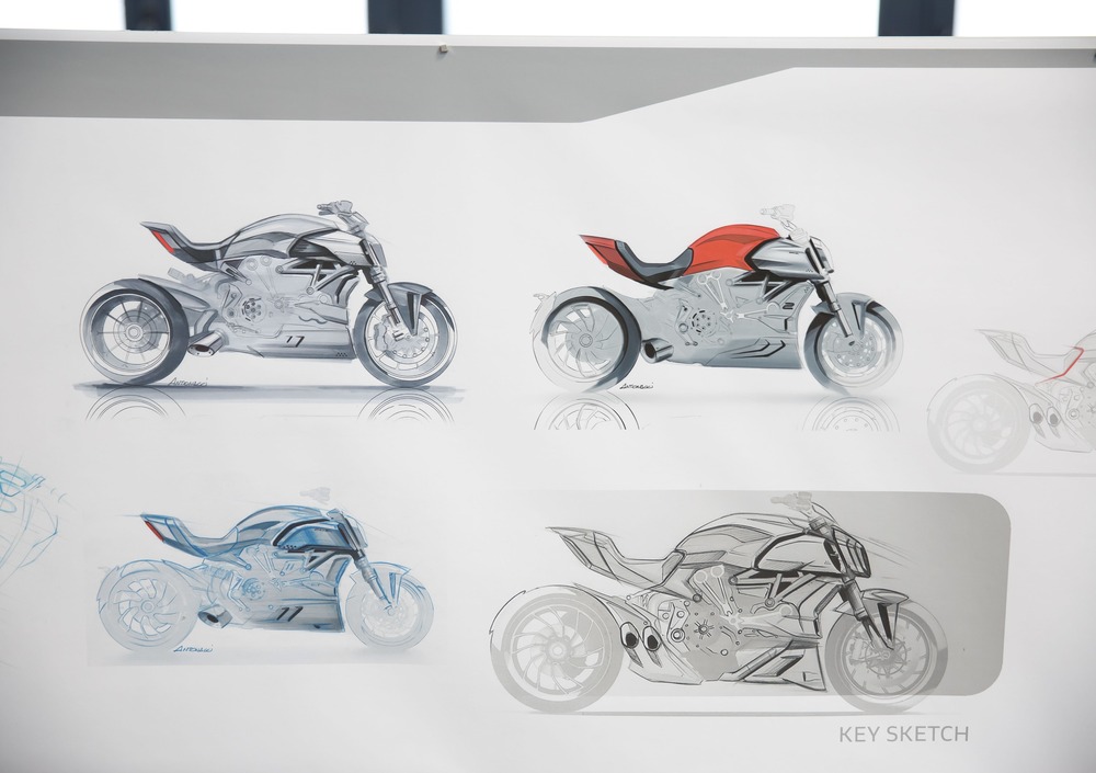«Per noi il Moodboard (la raccolta di immagini che adoperano designer e progettisti per rendere l'idea del loro progetto, ndr) è molto importante – sottolinea Antonacci – ci dà l’ispirazione, ci aiuta a capire il feeling che può passare la moto, le sensazioni che arrivano e soprattutto ci suggerisce in quale direzione muoverci». Dopo questa immersione creativa vengono realizzati centinaia di disegni, si preparano presentazioni, si sottopongono agli altri componenti del centro stile.