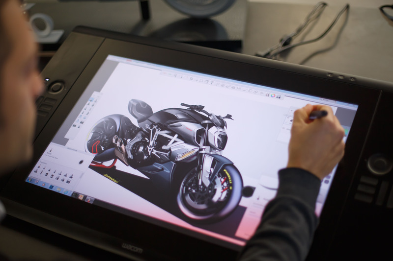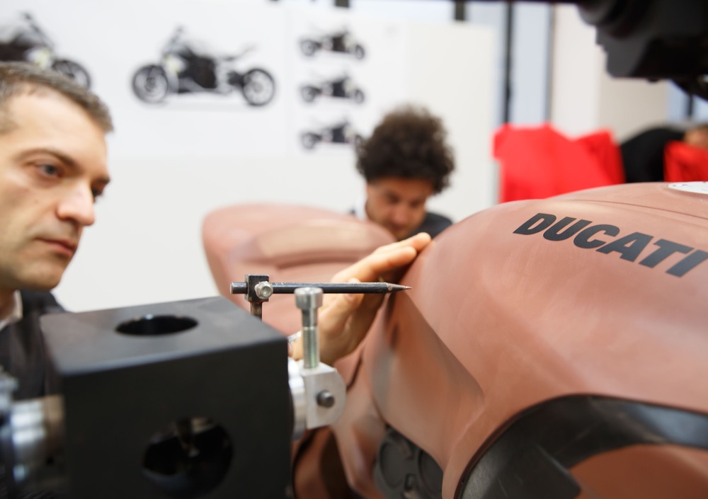 Nonostante esistano sofisticati programmi di disegno, al centro stile Ducati si preferisce ancora dar forma all’idea iniziale disegnando a mano sul classico foglio di carta. «Usiamo tantissimo i software – prosegue Ferraresi - ma ci sono ancora dei passaggi creativi per così dire “romantici” che rappresentano la parte forse migliore del designer: i bozzetti disegnati a mano, la modellazione clay, ancora una volta manuale, e infine vedere per la prima volta la propria moto su strada».