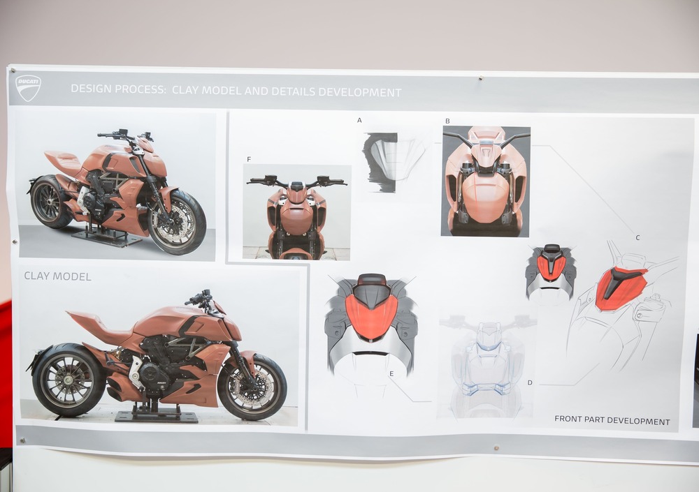 Il brief alla base di ogni nuova moto o di un aggiornamento – ci ha spiegato Stefano Tarabusi, product manager Ducati per le serie Diavel, Monster e Multistrada - prevede una serie di passaggi da rispettare come il posizionamento del modello nel proprio segmento, le analisi di marketing, dei modelli concorrenti e dei clienti di riferimento, la messa a fuoco delle caratteristiche tecniche più opportune e il design brief.