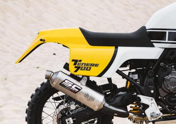 Base di partenza questa volta è l'enduro Yamaha, nata già con una ciclistica orientata al fuoristrada e con l'indispensabile avantreno da 21 pollici e le sospensioni di lunga escursione. Il motore è peraltro lo stesso CP2 montato sulla XSR già preparata da Deus.
