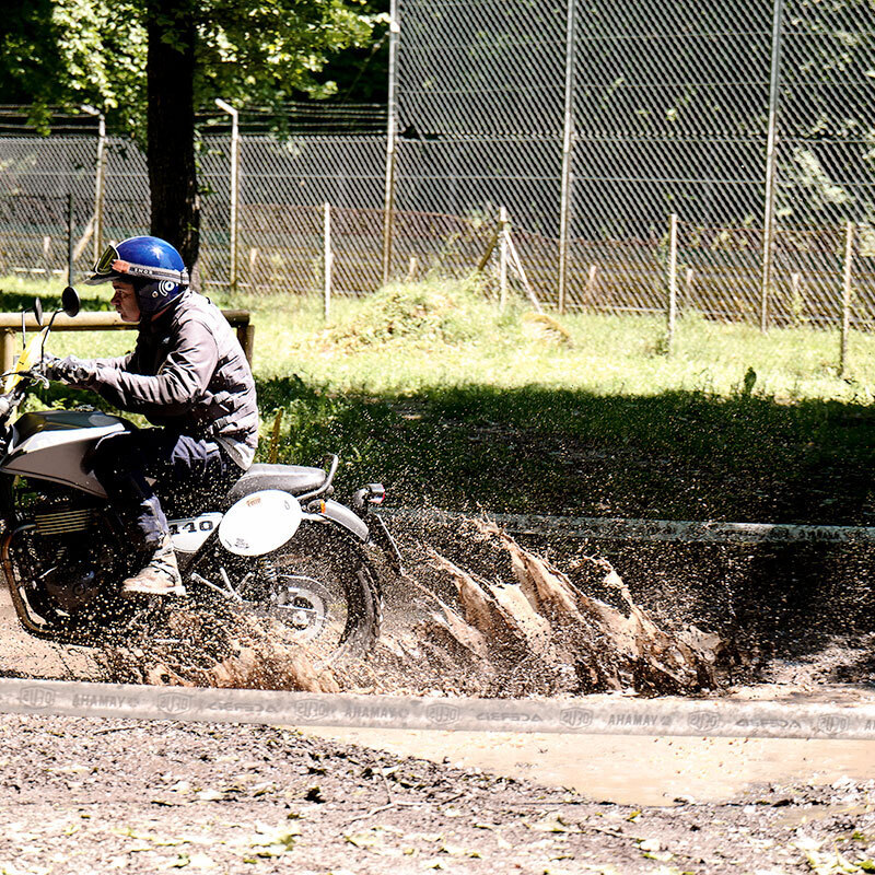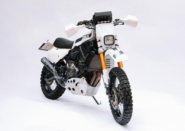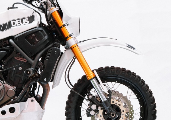 Allo scopo è stato montato l’avantreno completo di una Yamaha Super Ténéré 1200 (forcella rovesciata, completa di piastre, con steli da 43 mm per 190 mm di escursione, con molle più morbide e taratura interna rivista, per accordarsi al minor peso della moto ruota a raggi da 19” per pneumatici tubeless, doppio freno disco da 310 mm a margherita).