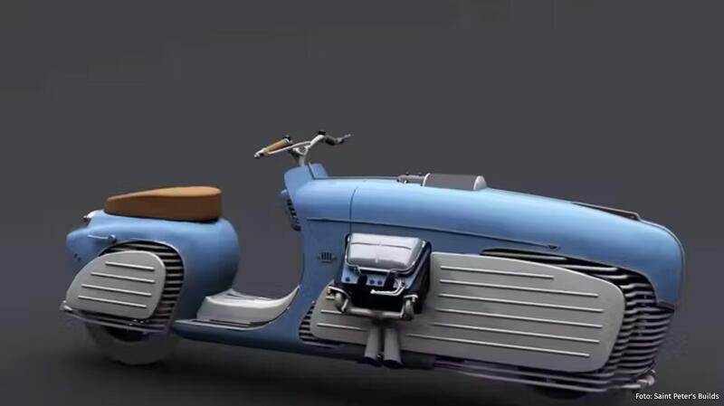 Da Motorradonline.de scopriamo uno studio stilistico di assoluto effetto. L’ispirazione da cui nasce questo oggetto si lega alle linee inconfondibili di Vespa, Lambretta e alle auto d’epoca anni ’50 e ‘60. Il customizzatore si chiama Saint Peter’s Builds, con base a San Pietroburgo e il progetto si chiama Dieselpunk. Al centro del progetto un motore V4 raffreddato ad aria proveniente dalla storica utilitaria sovietica ZAZ 968, prodotta dal 1970 fino agli anni ’90. Si tratta di un propulsore a benzina, contrariamente a quel che suggerisce il nome "Dieselpunk" con cilindrata di circa 1200cc e una potenza tra 40 e 50 cavalli. Particolare anche il sistema di trasmissione che rinuncia al cambio a quattro marce originale preferendo una trasmissione automatica a variazione continua (CVT) tipica degli scooter, prelevata da uno motoslitta di potenza simile.