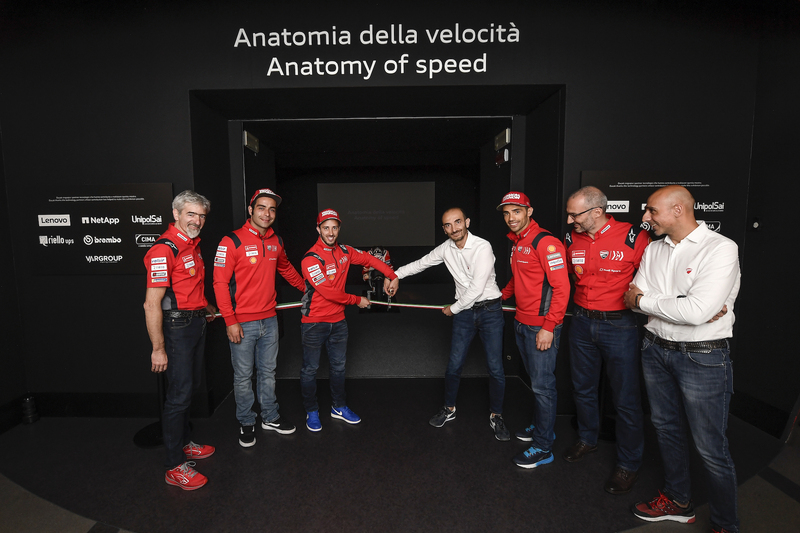 La mostra è stata inaugurata proprio oggi, alla vigilia del GP del Mugello (trovate qui orari e informazioni, qui invece tutti i segreti della pista toscana) con una bella presentazione da parte dell'AD Ducati, Claudio Domenicali, del Direttore Generale Ducati Corse Gigi Dall'Igna, ma anche del Responsabile sviluppo aerodinamico, Edoardo Lenoci (a cui vi proponiamo un'intervista) e di Alessandro Valia, Tester Ufficiale Ducati (che conosciamo da lungo tempo e che ha realizzato con noi la guida sulle basi dell'assetto).