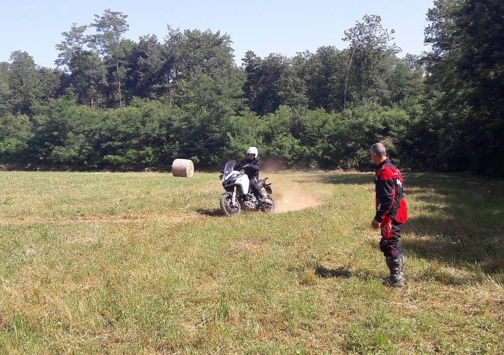 Anche quest'anno, per la seconda volta, Ducati Como ha organizzato due giornate di test off road con la Multistrada Enduro, per far avvicinare il pubblico ad un mezzo molto particolare. Il nostro pomeriggio è cominciato con un breve briefing sulle caratteristiche tecniche della moto e, successivamente, grazie alla partecipazione di Giampiero Findanno, ci sono stati illustrati gli esercizi che avremmo compiuto poi sul campo.