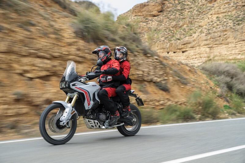 Le escursioni sono giustamente generose: 230 mm all'anteriore e 220 mm al posteriore. I cerchi a raggi tubeless da 21" all'anteriore e 18" al posteriore montano Pirelli Scorpion Rally Street — con omologazione tripla per chi voglia spingersi su pneumatici più tassellati (Scorpion Rally) o più stradali (Scorpion Trail).
