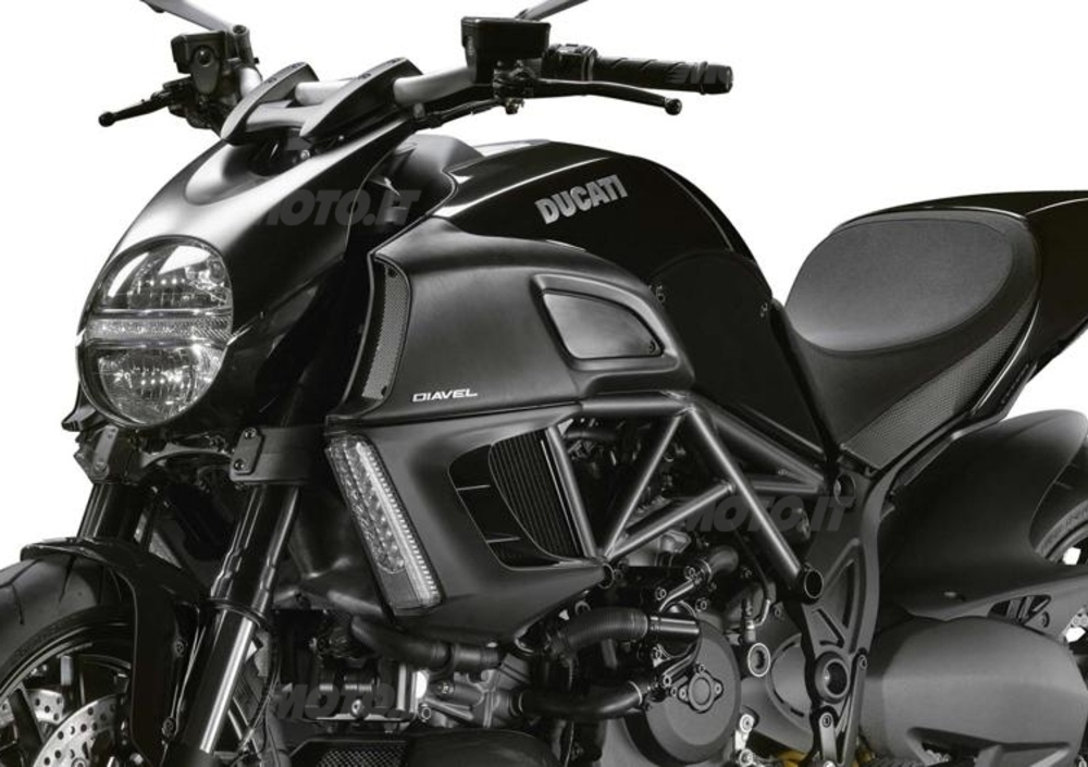 Livrea confermata per la Diavel carbon, sia nella colorazione “Carbon Red” (Ducati Red su trama in carbonio opaco) con telaio rosso, o “Carbon Black” (trama carbonio nero lucido e nero opaco) con telaio nero.