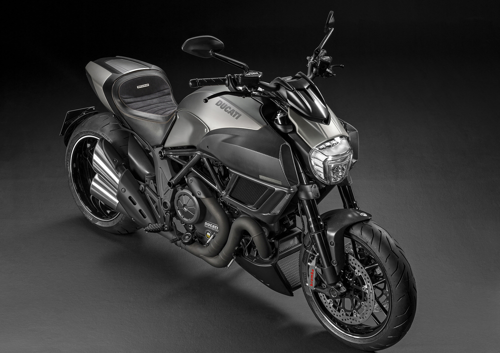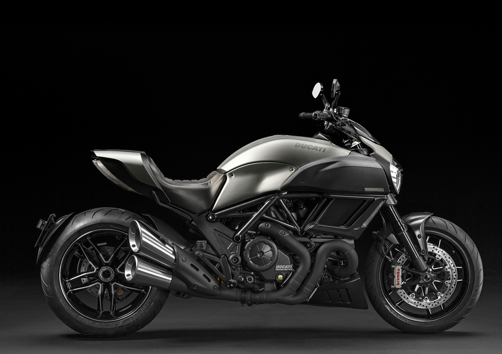Il titanio, materiale scelto per le caratteristiche di resistenza e leggerezza, è stato utilizzato per connotare questo Diavel. Le ampie cover serbatoio (centrali e laterali) e la cover fanale anteriore sono state realizzati utilizzando questo metallo che per l’occasione è stato sottoposto a processi di nastratura e satinatura chimica per conferirgli toni di colore differenti. Nella cover passeggero, ridisegnata ed allargata per questa versione, il titanio viene combinato col carbonio. Il carbonio, inoltre, è stato utilizzato per realizzare le prese d’aria che sono state ridisegnate più larghe e muscolari. Sempre in carbonio sono state realizzate anche: le cover dei radiatori, il piccolo cupolino, il parafango anteriore e posteriore, il copri pignone e il cover tappo serbatoio.