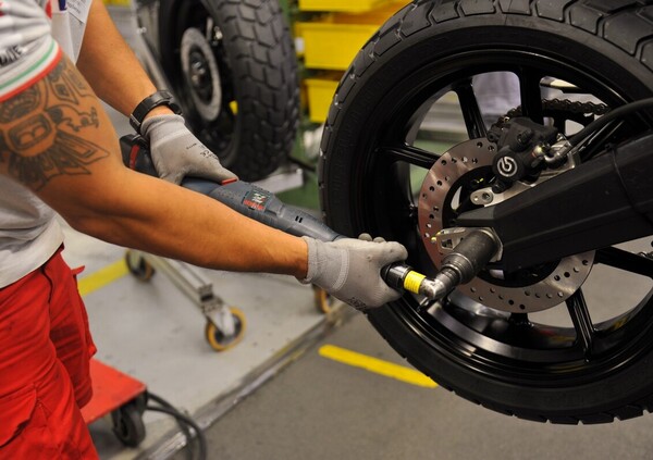 Nel corso della visita in fabbrica Ducati, dove vengono assemblati tutti i modelli prodotti dal marchio di Borgo Panigale, abbiamo potuto ammirare i tecnici al lavoro e le capacità della pratica tecnologia fornita da Bosch. Dal settore dedicato all’assemblaggio dei motori all’ultima fase prima del collaudo.