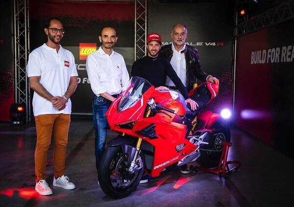 L'arrivo a sorpresa di un Andrea Dovizioso davvero incuriosito dal modellino ("Anche se come molti piloti ho avuto un'infanzia quasi tutta fatta di pista e allenamenti, e quindi ho giocato meno di altri con i LEGO, come tutti nella nostra vita abbiamo giocato almeno una volta con i mattoncini. Però vedere da vicino una replica della Panigale V4 R è qualcosa di incredibile e di un altro livello") è stato solo l'antipasto.