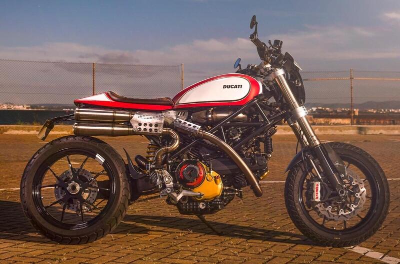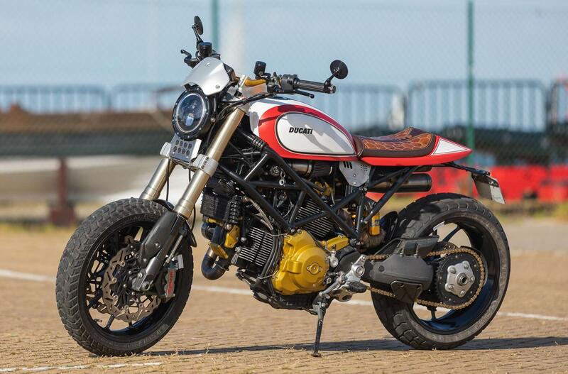 La scelta elettiva come base di partenza, per restare in casa Ducati, avrebbe potuto essere una Scrambler 800, ma poi si è deciso per la Hyper anche se adattare l'aggressiva supermotard di Borgo Panigale in un abito da flat track deve essere stato certamente impegnativo, a partire dal serbatoio, prelevato da una Ducati Scrambler e profondamente modificato per adattarsi al telaio di una moto dove il serbatoio carburante è parzialmente sotto sella e che ha imposto anche il riposizionamento dei cablaggi elettrici. Totalmente rifatto il telaietto posteriore e, ovviamente, l'impianto di scarico che segue i dettami tecnici ed estetici delle moto da flat track con un passaggio alto che deve aver creato non pochi problemi nella realizzazione dei collettori del cilindro posteriore.