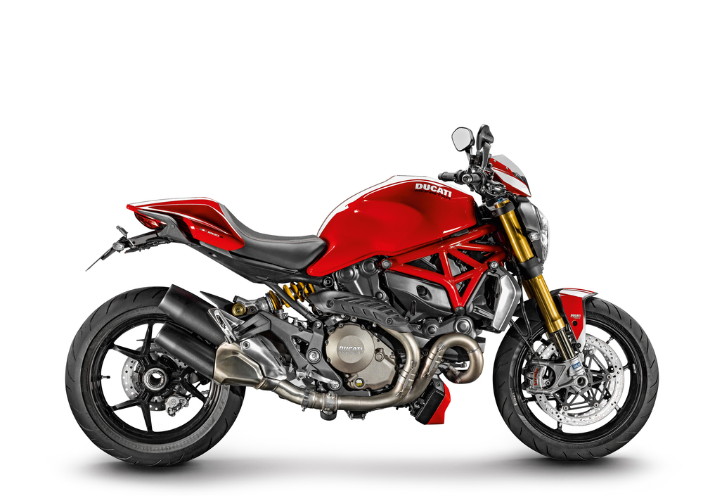 La versione più performante, 1200 S, è equipaggiata con il motore Testastretta 11° DS da 1198 cc e 145 cv a 8.750 giri. Ha telaio a traliccio attaccato alle teste e forcellone monobraccio. Le sospensioni sono affidate ad una forcella Öhlins da 48 mm di diametro e a un ammortizzatore Öhlins completamente regolabili mentre, per quanto riguarda l’impianto frenante, la moto è equipaggiata con dischi Brembo da 330 mm e pinze radiali M50. La Monster 1200 S Stripe è dotata di strumentazione TFT e Riding Mode, oltre al Ducati Safety Pack, che permette di variare l’ABS su 3 livelli ed il DTC (Ducati Traction Control) su 8 livelli. Inoltre sono presenti cerchi a 3 razze ad Y, indicatori di direzione a LED e parafango anteriore in fibra di carbonio e sella regolabile in altezza.