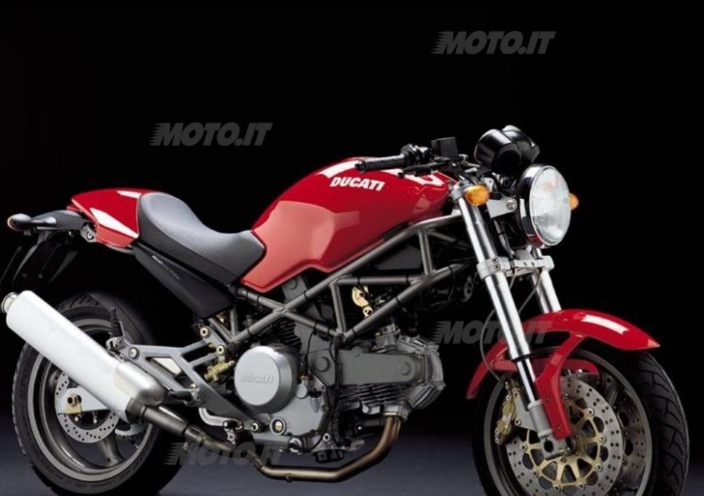 perde il carbonio a favore della 900S, dotata anche di cupolino, impianto frenante con dischi in ghisa e tubi in treccia, asta di reazione sulla sospensione posteriore, sella in splendido cuoio Connolly – lo stesso che storicamente adorna gli interni delle Jaguar. Nel 1997, un po’ per adeguarsi alla sparizione della benzina “rossa” e un po’ perché alla fine tanti il Mostro lo usano anche in città e preferiscono un’erogazione più fluida in basso a qualche cavallo in alto, la 900 perde qualche millimetro di diametro delle valvole e riceve gli assi a camme meno spinti già in dotazione alla 750. E visto che alla fine piace tanto così, il cupolino arriva per tutte le 900 assieme alla fortunata versione Dark, con sovrastrutture in nero opaco che fanno risparmiare qualche soldo soprattutto se si vuole destinare il proprio Monster alle cure dell’aerografo, come spesso succede all’epoca. Nel 1999 arriva la 900ie con iniezione elettronica, con cui possiamo considerare concluso il ciclo della prima generazione di Monster.