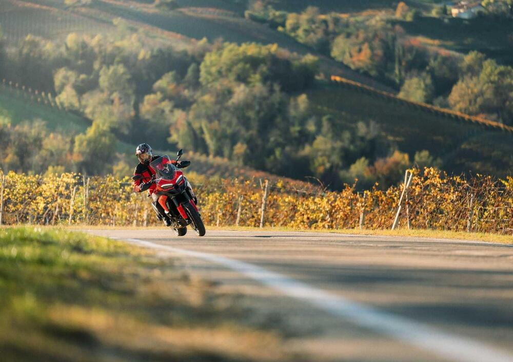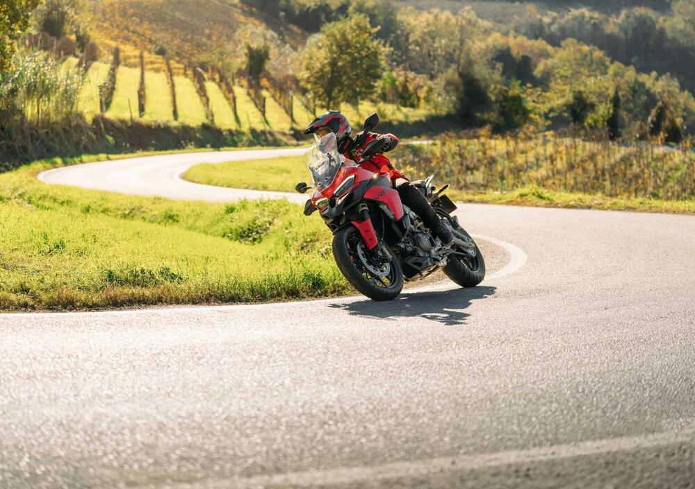 Per il comfort termico, come su Multistrada V4, sono stati introdotti gli “upwash”, convogliatori d’aria laterali integrati nel design della moto che contribuiscono a indirizzare aria fresca sulle gambe del pilota.