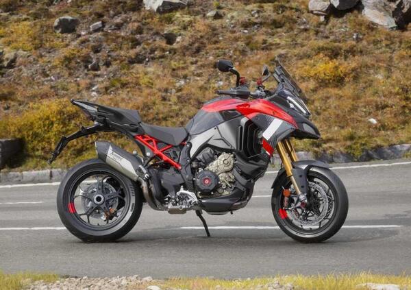 La nuova Multistrada è disponibile in 3 distinte versioni: la V4, la V4 S con pinze Brembo Stylema e sospensioni Marzocchi elettroniche (semiattive) e la tanto bramata Pikes Peak con cerchi da 17, sospensioni elettroniche semiattive e un sacco di chicche più racing. La novià Ducati, come spieghiamo in questo articolo, si conferma nel firmamento del segmento ed è la prova del massimo livello ingegneristico raggiunto dalla Casa di Borgo Panigale sul progetto Multistrada. Sulla nuova Maxi/Crossover è stato implementato un algoritmo utilizzato e studiato da Ducati Corse, in MotoGP.
