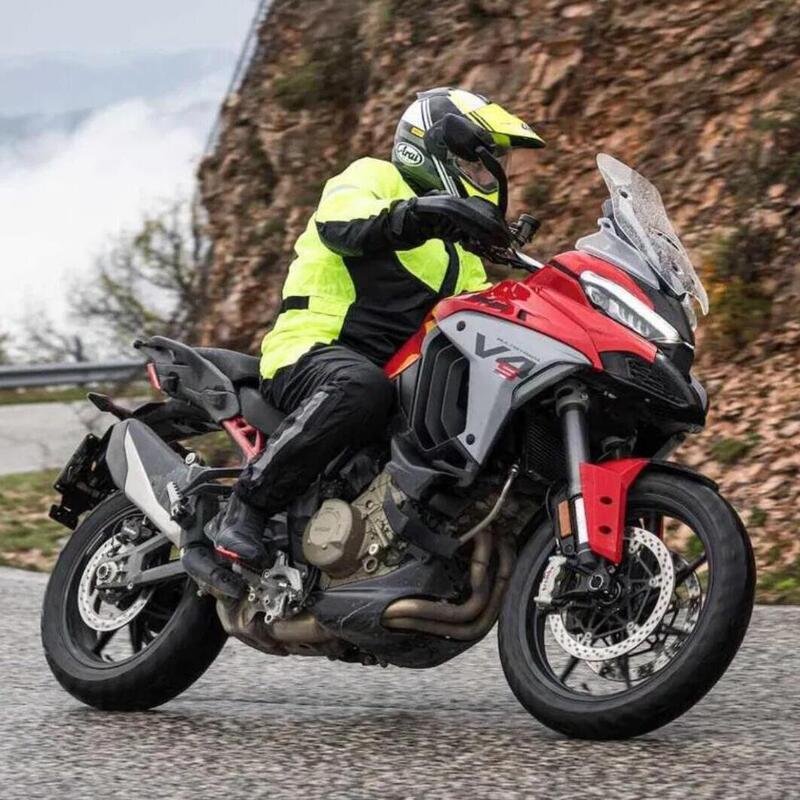 Il comfort è uno degli aspetti su cui Ducati ha lavorato con maggiore attenzione. Il parabrezza cresce di 20 mm in altezza e 40 mm in larghezza rispetto alla Multistrada V4 standard, offrendo una protezione significativamente maggiore sia per il pilota che per il passeggero. I deflettori sono stati ridisegnati per ampliare la zona d'aria calma dietro alla carenatura.