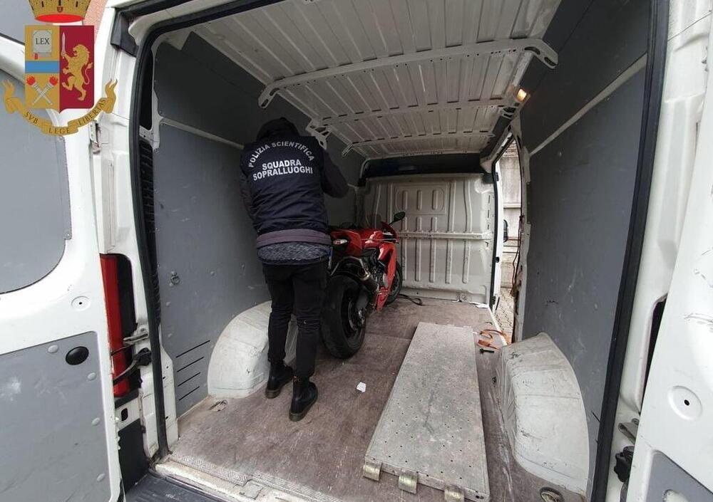 I poliziotti, in via del Pettirosso all’angolo con via dell’Allodola, hanno controllato un furgone - perchè guidato da una persona di spicco della criminalità locale - e hanno rinvenuto al suo interno una Ducati Panigale 959 successivamente riconsegnata al proprietario. All'interno del mezzo c'era anche un altro uomo che cercava invano di nascondersi dietro il motoveicolo.